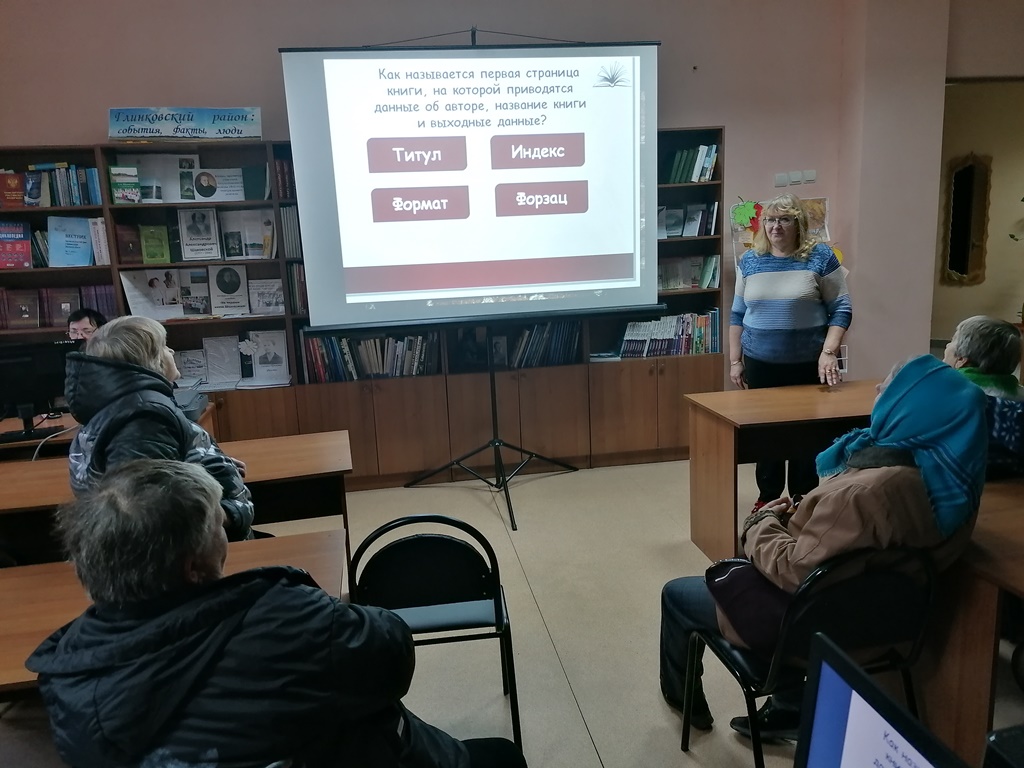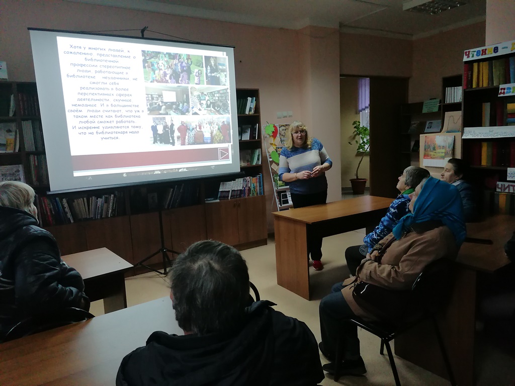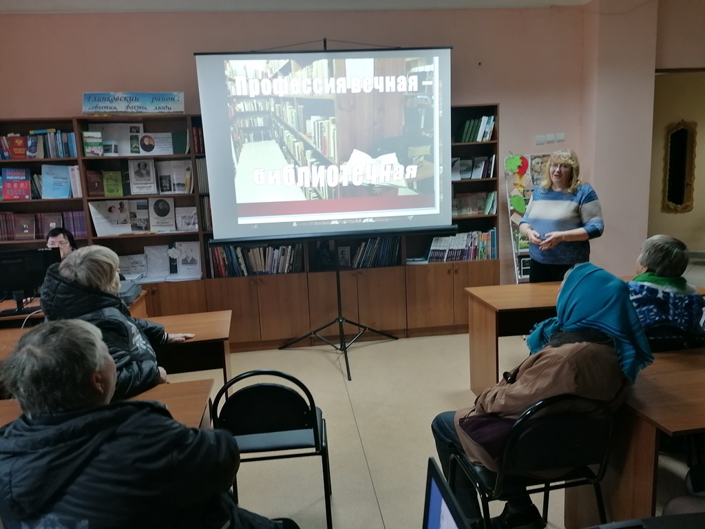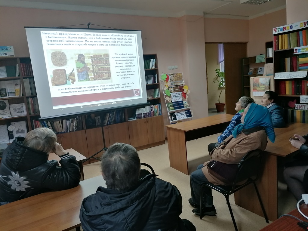 5 ноября, члены «Клуба золотого возраста» СОГБУ «Ельнинский КЦСОН» с. Глинка, совершили экскурсию в Центральную Глинковскую библиотеку. Во время встречи заведующий отделом обслуживания МБУК «Глинковская Библиотека» М.В. Костюченкова познакомила гостей с отделами, услугами и   электронными ресурсами библиотеки, с системой каталогов и картотек, рассказала о работе библиотекаря и значимости книги и чтения.