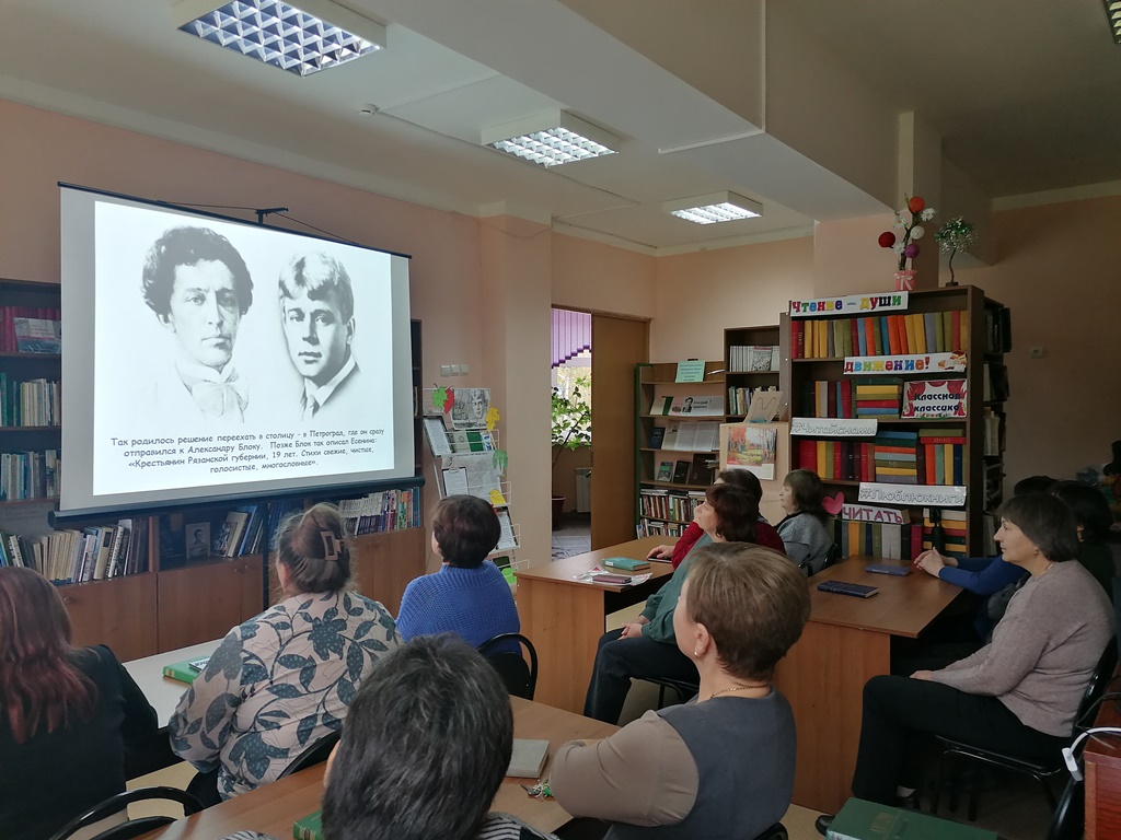 6 октября в читальном зале Глинковской библиотеки прошла литературно-музыкальная гостиная «Певец страны березового ситца», посвященная дню рождения Сергея Александровича Есенина.